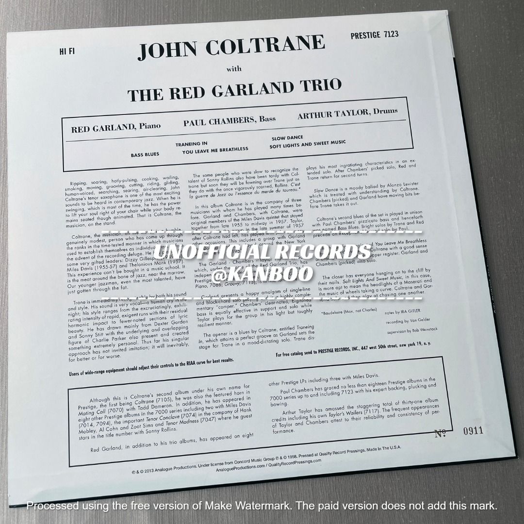 [#5] 出售: 《John Coltrane With The Red Garland Trio 》黑膠唱片 《John Coltrane With The Red Garland Trio 》AP【再版】APRJ 7123【限量版】 - 2013 - US - 黑膠唱片 Vinyl/Cover: NM/NM | NM 【唱碟-1: NM】近乎全新-無明顯瑕疵 【唱碟-2: NM】近乎全新-無明顯瑕疵 【封套: NM】唱片封套沒有明顯的瑕疵 |