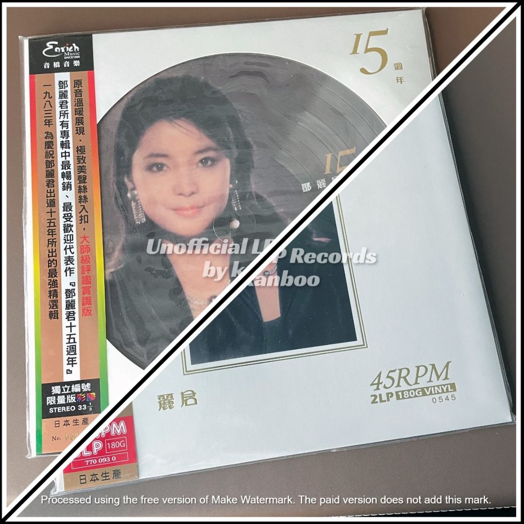 | [#1] 出售: 兩套全新未開《15週年》 鄧麗君 LP 黑膠唱片 兩套全新未開《15週年》 鄧麗君 - Enrich Music 音樂之橋 - 日本印制 - 2018 - 台版 - LP 黑膠唱片【中文黑膠】 #1346 《15週年》 鄧麗君 - Enrich Music 音樂之橋 【圖案版】【獨立編號】日本印制 - 2018 - 台版 - LP 黑膠唱片【中文黑膠】 Media | Sleeve: SEALED 全新未開 #1347 《15週年》 鄧麗君 - Enrich Music 音樂之橋 【45RPM】180g 日本印制 - 2018 - 台版 - LP 黑膠唱片【中文黑膠】 Media | Sleeve: SEALED 全新未開兩套全新未開《15週年》 鄧麗君 - Enrich Music 音樂之橋 - 日本印制 - 2018 - 台版 - LP 黑膠唱片【中文黑膠】 #1346 《15週年》 鄧麗君 - Enrich Music 音樂之橋 【圖案版】【獨立編號】日本印制 - 2018 - 台版 - LP 黑膠唱片【中文黑膠】 Media | Sleeve: SEALED 全新未開 #1347 《15週年》 鄧麗君 - Enrich Music 音樂之橋 【45RPM】180g 日本印制 - 2018 - 台版 - LP 黑膠唱片【中文黑膠】 Media | Sleeve: SEALED 全新未開 【Carousell 不時更新】https://www.carousell.com.hk/kanboo/ |