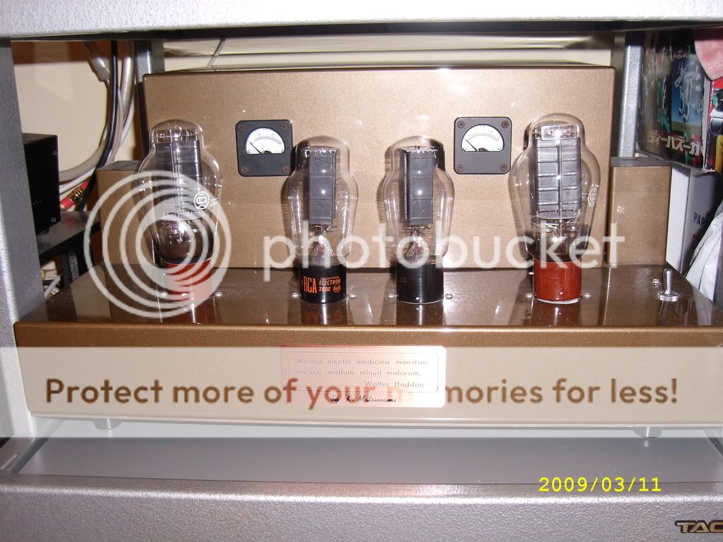 | [#31] 300B 膽 同好會 各位好,我的單枝amp推TAD300仔,人聲及Jazz沒問題,之前Klipsch書架OK. 現正用FullMusic Mesh Plate 300B,個人覺得分析力強,低音結實,要略調低偏壓.另曙光98比較柔和,音效一般. |