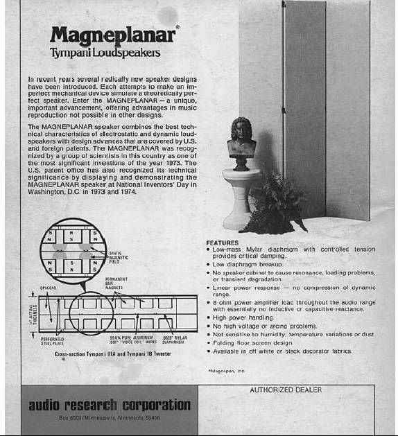 | [#61826] Acoustic Research AR 友 做生產線: 70年代高級HiFi之中, 其中一家製造商亦都實行3M生產線standard. 佢係Magneplanar loudspeakers. 由已故Jim Winey發明, 廠房位於明尼蘇達州 (以前嘅Audio Research Corp 廠房亦都喺Minneapolis, Minnesota ). 已故嘅Jim Winey做 HiFi 生意之前佢係3M engineer. 早期型號(1970年代):第一個受歡迎嘅型號係大型Dipole Design loudspeaker、令人印象深刻嘅 Tympani 系列(例如 Tympani I-D ). 今日有啲古董Tympani-1D因為膠水老化,漆皮銅線脫離震膜,但冇問題,小心用膠水貼返就 OK! ![]() |