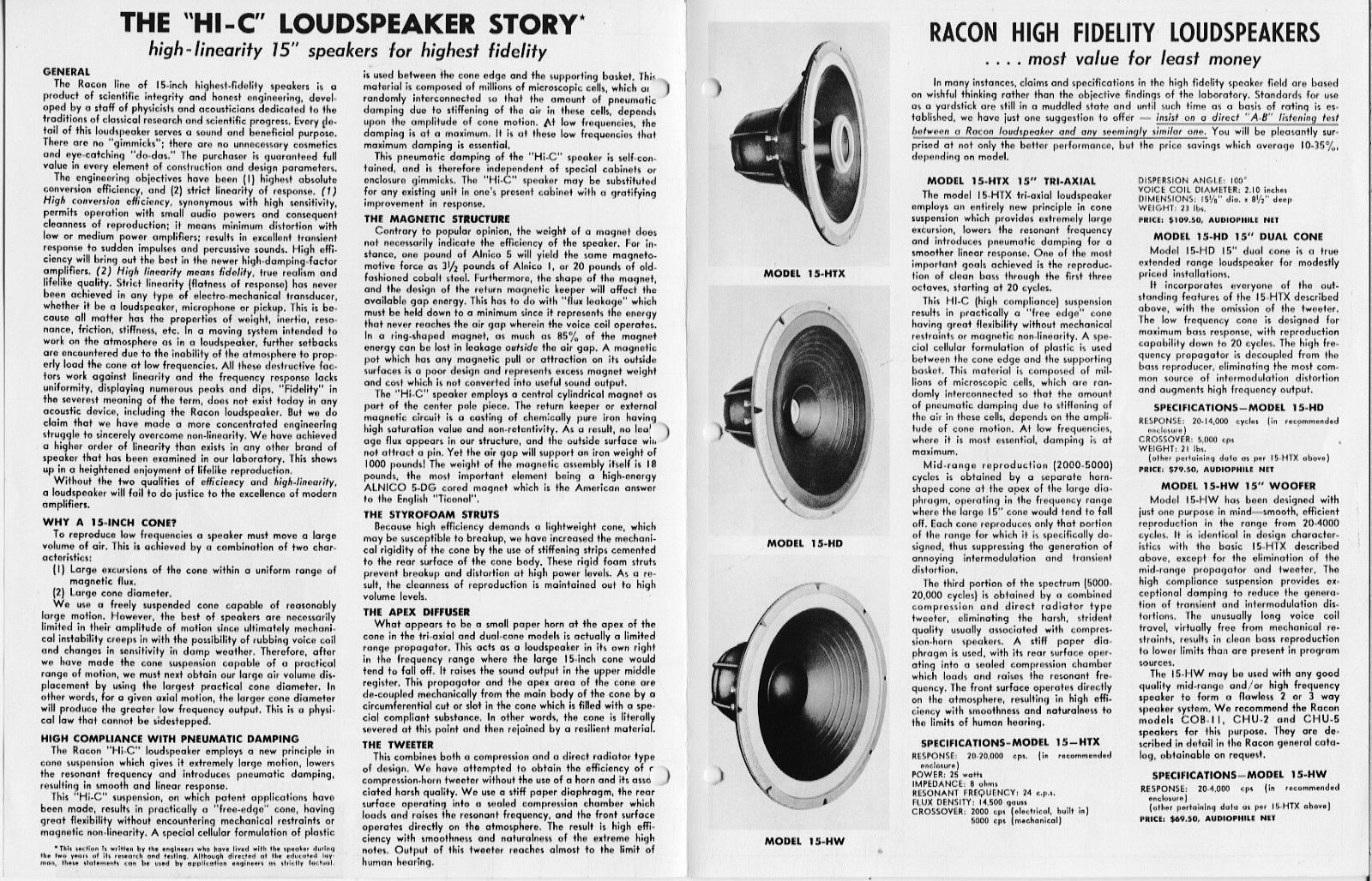 [#17014] Racon Hi-C 1955年Racon Hi-C系列揚聲器單元簡介! ![]() |
