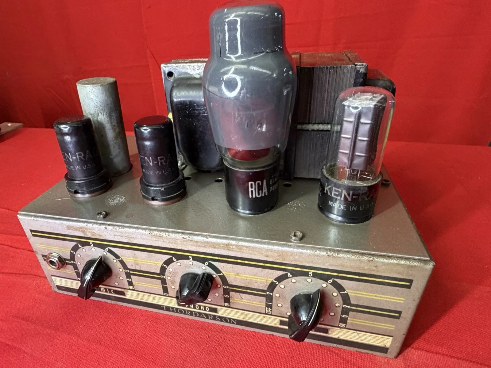 | [#17061] RCA MI-9328 & MI-9354 RCA MI-9354是RCA於1939年推出的RCA Photophone Duluxe系列劇院音響系統的後級放大器,當年主要用於RCA PG-140A、PG-142A和PG-143A劇院音響系統,此機主要是配合RCA MI-9701、RCA MI-9328前級放大器和RCA MI-9302或RCA MI-9303劇院補償EQ一同使用! 不過RCA MI-9328主要是用於光影唱頭放大,所以增益會比普通民用前級高也沒有音量制,而配合音量制使用時增益和阻抗匹配要小心注意! ![]() |