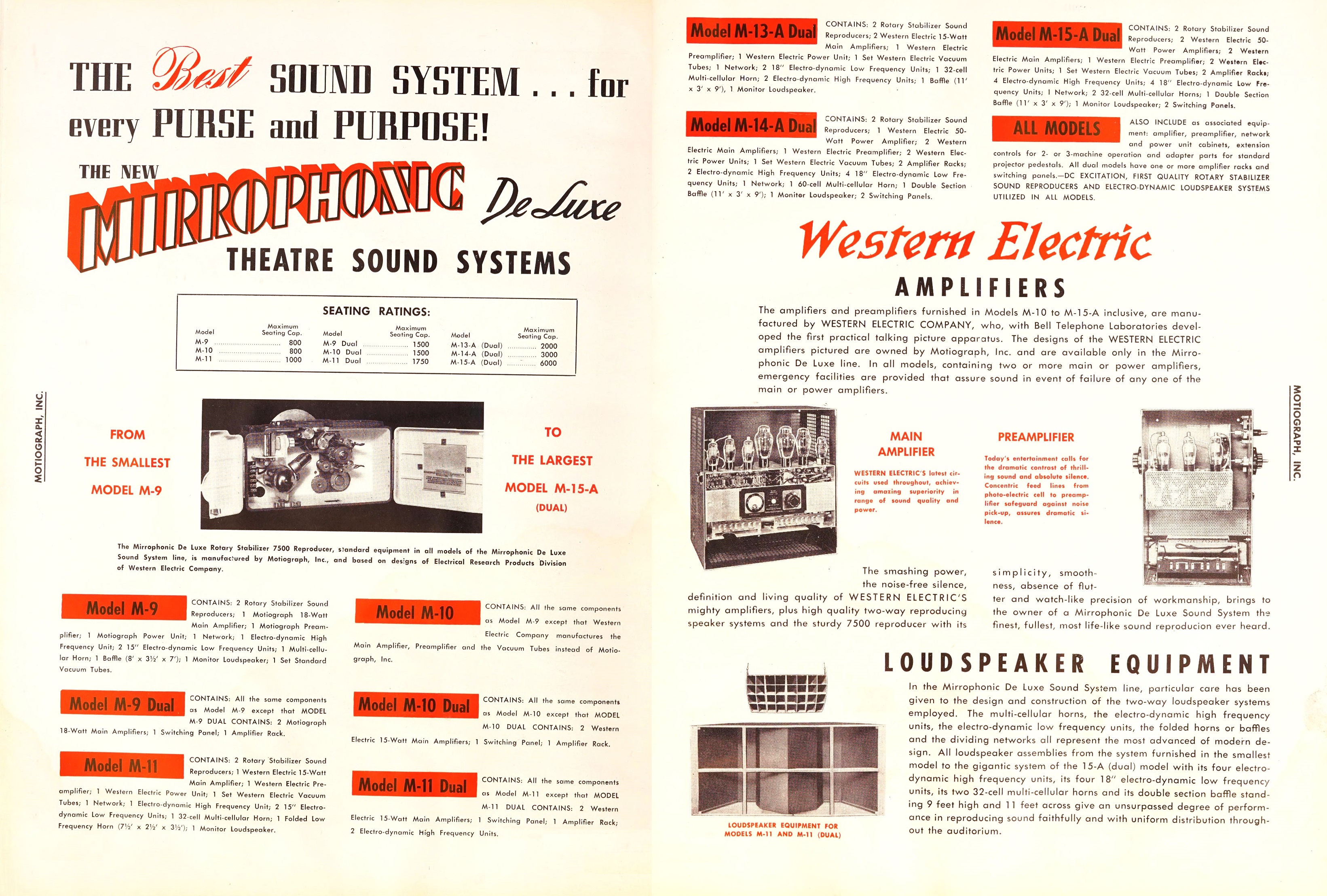 | [#17062] Motiograph Mirrophonic Deluxe Theatre Sound System 1941年Motiograph Mirrophonic Deluxe影院音響系統廣告。Motiograph Mirrophonic Deluxe影院音響系統是Western Electric Mirrophonic影院音響系統的延續系列!實際上,Motiograph TA-7466前級放大器、TA-7467功率放大器及TA-7477功率放大器均由Western Electric製造的! ![]() |
