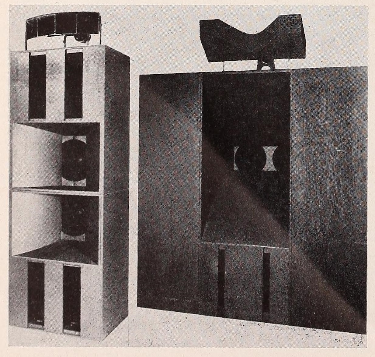 | [#17119] Westrex 15 Type and 16 Type 揚聲器 1954年Westrex揚聲器的歷史照片!左側為Standard 15 Type揚聲器, 配備Westrex 713-B高音單元與Westrex KS-12025高音號角的Westrex ,2只Westrex 803-A低音單元與Westrex H-825低音號角音箱,以及Westrex N-800分音器(由Altec Lansing負責生產)。 右側為 Westrex Standard 16 Type 揚聲器,配備 Westrex T-530-A 高音單元與 Westrex T-551-A 高音號角 (Acoustic Lens), 2 只 Westrex T-510-A 低音單元與Westrex H-210低音號角音箱,以及 Westrex N-500 分音器(由JBL負責生產)! ![]() |