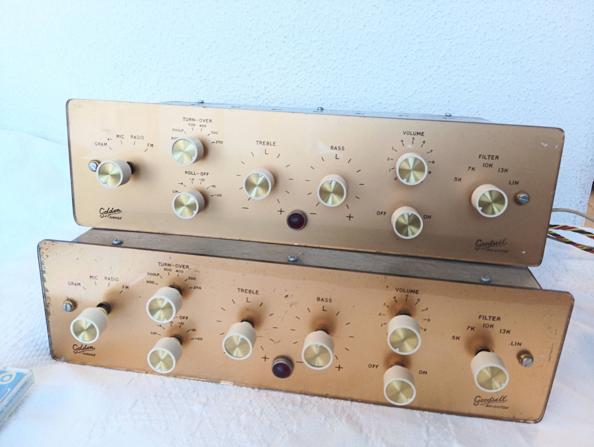 | [#17122] Goodsell PFA 小弟由於身在日本,所以未能即時回覆Richard兄,真是十分抱歉。這部前級放大器是行兩支ECC83和兩支EF86,6級放大設計在英系前級中相對較少見,而此機本身並沒有電源部份,須要由後級放大器供電才能運作。由於小弟老友Dennis擁有一對Goodsell GW18,剛好可以成為一套西裝!再加上是一對配對,所以他也毫不考慮便立即買下了! |