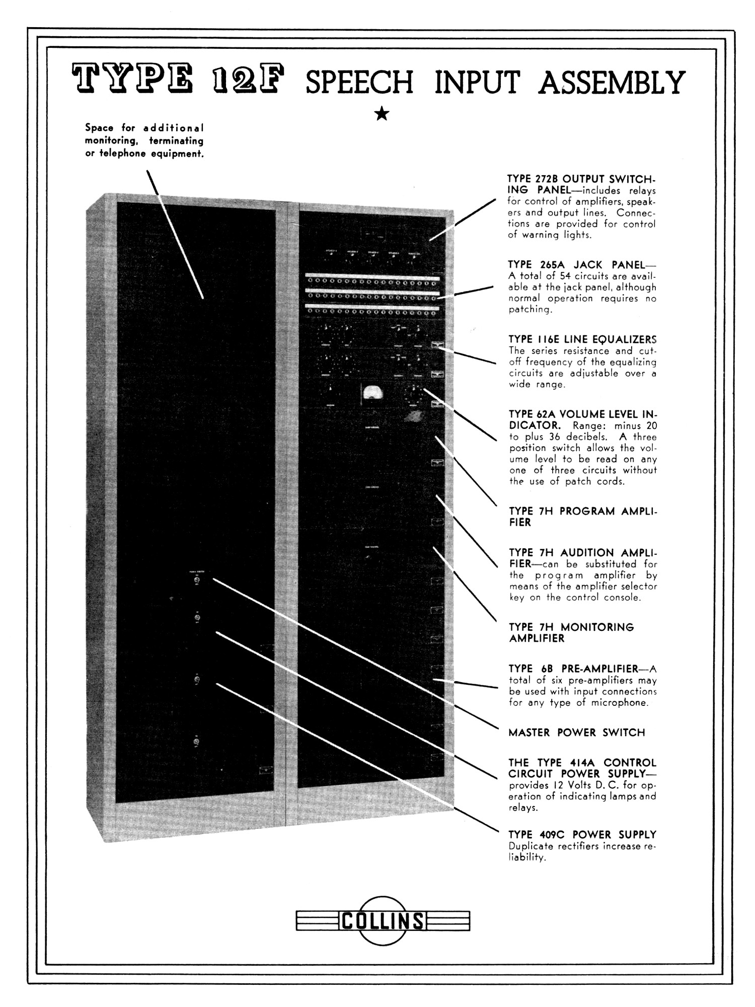| [#17098] Collins 12F Collins 12F是Collins Radio於1936年出的AM廣播用混音放大器系統! ![]() |