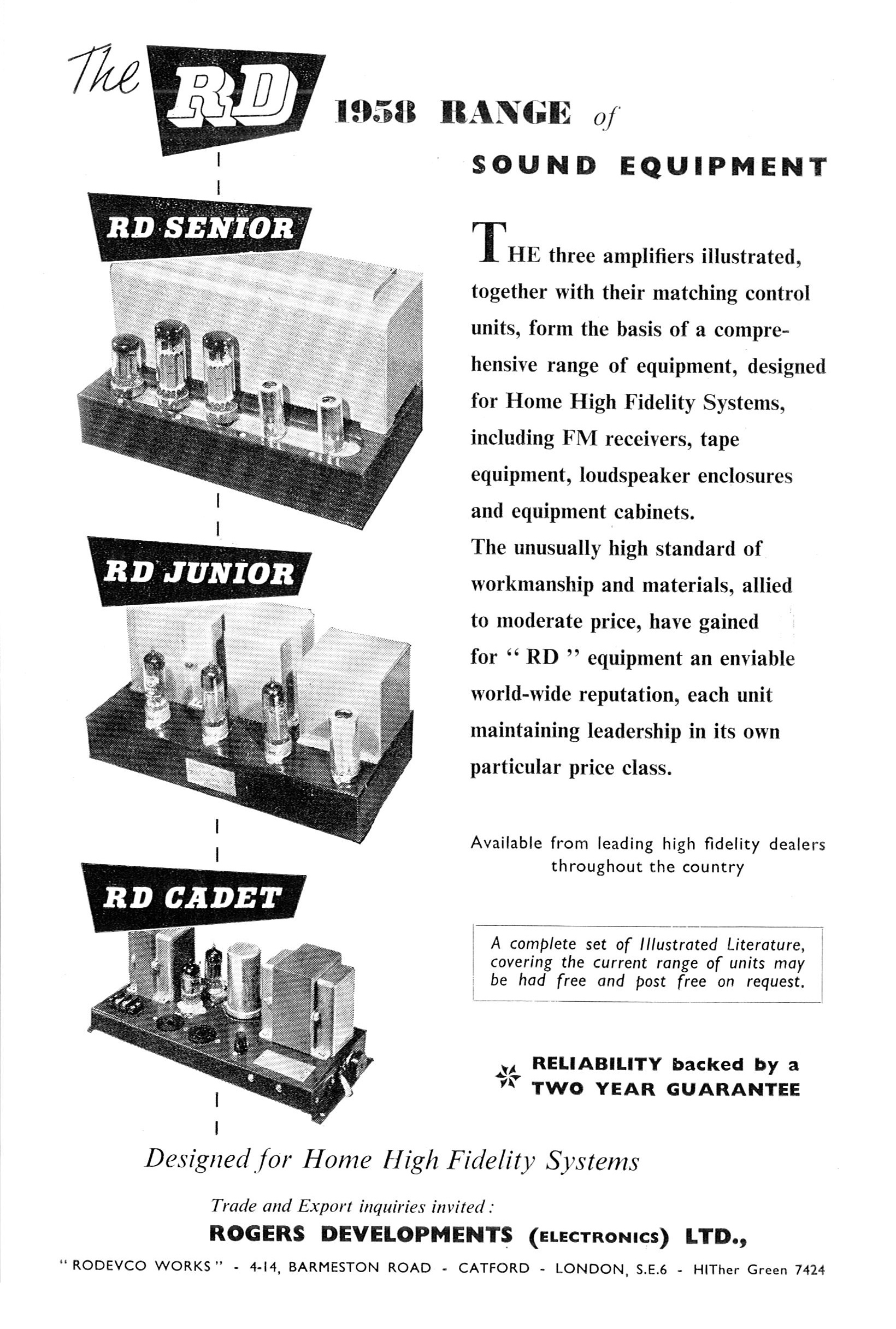 | [#17106] Rogers Amplifier 1958年Rogers Hi-Fi放大器廣告,當年Rogers三條Hi-Fi放大器產品線包括Rogers Senior MK.III, Rogers Junior MK.II和Rogers Cadet MK.I. ![]() |