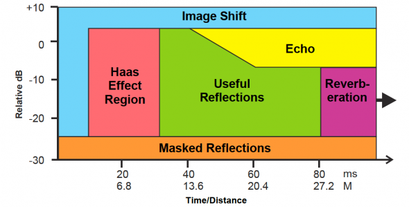 | [#16] 改善音場深度和寬度 若然早就出現這理論,又一向用於舞台音響,這方法用於家中的音響組合,又會有甚麼好處... 先看以下的資料,正是原理及運用的文章,說明了與AV ,單元相位排列 (我自已玩相位加Haas) 的原理是不一樣的.. (Haas effect) (Haas)通过实验表明:两个同声源的声波若到达听音者的时间差在5~35ms以内,人无法区分两个声源,给人以方位听感的只是前导声(超前的声源),滞后声好似并不存在 若延迟时间 在35~50ms时,人耳开始感知滞后声源的存在,但听感做辨别的方位仍是前导声源 若时间差50ms时,人耳便能分辨出前导声与滞后声源的方位,即通常能听到清晰的回声。 Haas 对双声源的不同延时..给人耳听感反映的这一描述,称为Haas效应。这种效应有助于建立立体声的听音环境 当两个强度相等而其中一个经过延迟的声音同时到聆听者耳中时,如果延迟在30ms以内,听觉上将感到声音好像只来自未延迟的声源,并不感到经延迟的声源存在。当延迟时间超过30ms而未达到50ms时,则听觉上可以识别出已延迟的声源存在,但仍感到声音来自未经延迟的声源。只有当延迟时间超过 50ms以后,听觉上才感到延迟声成为一个清晰的回声。这种现象称为哈斯效应,有时也称为优先效应 指人们不能分辨出某些延迟声的现象。延迟声的声压级小于先导声,无论来向如何,只要小于17ms,就不会感到延迟的存在。当延迟声的方向接近先导声,延迟30ms也不会感受到。只有大于50ms时,人们才会感受到延迟声。 概述 在一般剧场扩声设计中,为了提高声场的均匀度和利用扬声器的方向性来提高系统的传声增益,通常将主扬声器设置在舞台台口上方,此时观众席的前排观众就会感觉到声音是从舞台台口的顶部传来的,造成声像的不统一,为了解决这个问题,有时会在舞台两侧较低的位置,布置一些辅助扬声器,这些扬声器距离前排观众很近,其声音比顶部扬声器先到达前排观众。也不会感受到声源的存在.... 最後修改時間: 2013-05-22 00:43:14 |