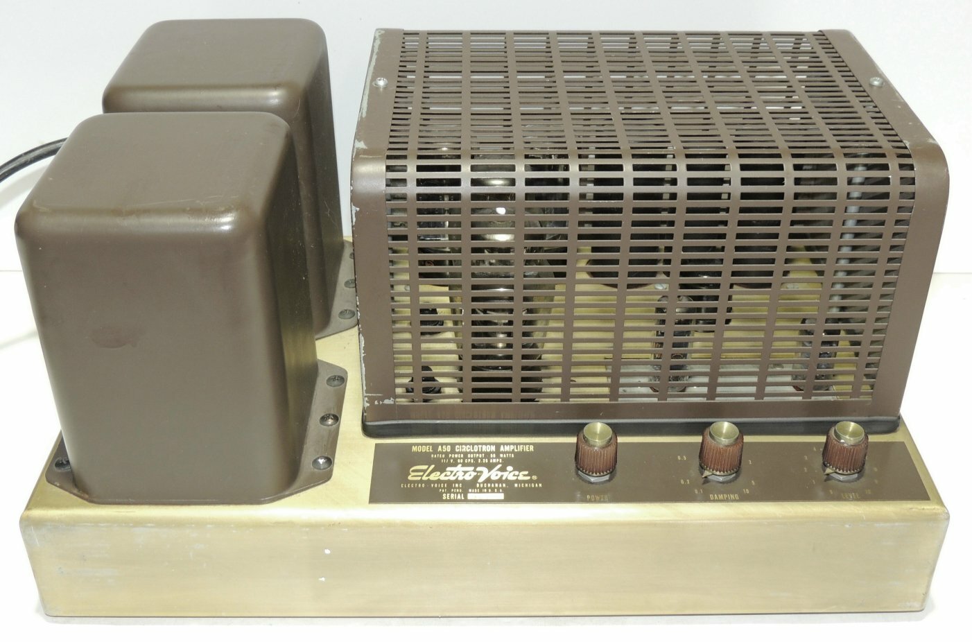 | [#15843] Electro-Voice A50 Electro-Voice A50是Electro-Voice於1955年推出的單聲道後級放大器,6550以Circlotron接駁推挽50 Watts輸出!當年Electro-Voice A50是由Alpha M. Wiggins負責設計開發,並用上了Electro-Voice著名的Circlotron輸出線路設計。當年此機屬民用後級放大器旗艦,而輸出功率緊次於Electro-Voice系內專業用的Electro-Voice A100。此機當年主要配合Electro Voice PC-1前級放大器一同使用。 ![]() |