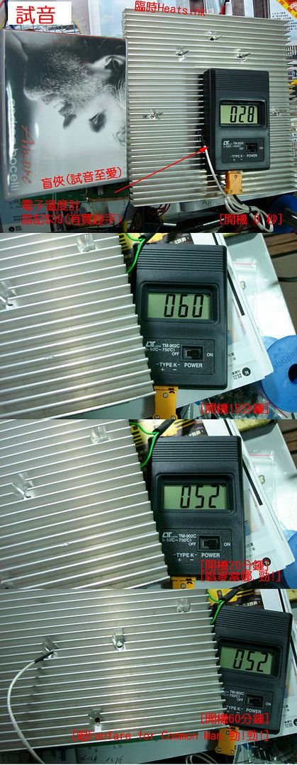 | [#11] 部amp的散熱足夠嗎? Buy a tester from 鴨記昌記. If the air temperature at the exhaust hole of the amplifier is >50⁰C The amp's power transistors are going to die. (the body temperature of the power transistors like 90⁰C !) ![]() |