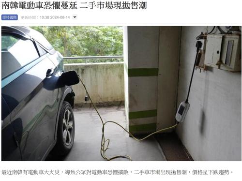 | [#48] 二手電動車 南韓大量二手車放售呀,執平貨係時候 ~~ -- 南韓《中央日報》周一(12日)報道,二手車直銷平台K Car上周六(10日)透露,在8月1日仁川發生電動車起火事故後的7天內,登錄銷售的二手電動車比前一周增加了184%,而發生火災的平治EQ系列車型佔比達10%,比前一周(0件)增加了很多。現代汽車IONIQ 5和起亞EV6的二手車價格,分別下跌1.97%和1.11%,特斯拉Model 3和Model Y的價格跌幅更分別高於2.61%和3.36%的平均水平。 ![]() |