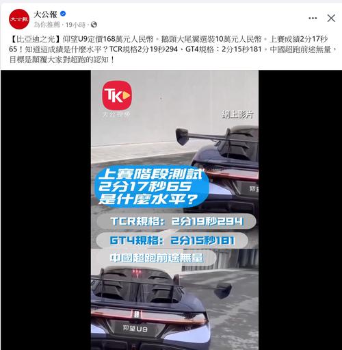 | [#29] 比亚迪最贵车型上市 纯电超跑仰望U9售价168万元人民币 公道啲講,百幾萬買唔到什麼超跑(新車計) 先唔講佢嘅 performance,人哋問你揸咩跑車,你要唔怕尷尬話揸BYD先好野。 我等睇愚村愛黨三世祖等人,個個出返架。 |