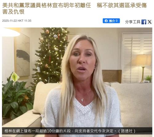 | [#58] 「富豪淫媒」愛潑斯坦檔案,魔鬼名冊 問得好 ~~ 名存實亡,糧照出,聽聽話話,又安享4年,可以嗎? -- 美國共和黨眾議員泰勒格林表示,將於明年1月離任。 格林在網上發布一段超過10分鐘的片段解釋今次決定,表示不希望她的選區因總統特朗普反對她,不得不承受充滿傷害及仇恨的中期選舉。特朗普回應時就說對國家來說是個好消息,他沒有計劃與格林對話,但祝願對方一切順利。 格林曾經是特朗普的堅實盟友,但近月兩人關係公開決裂。格林批評對方在已故富商愛潑斯坦案件、外交政策及醫保等議題上的立場,特朗普就形容格林是叛徒及怪人,表明如果對方明年競選連任,他會支持挑戰格林的候選人。 ![]() |