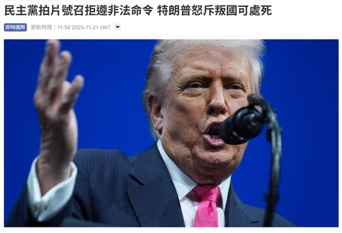 | [#45] 「富豪淫媒」愛潑斯坦檔案,魔鬼名冊 呵呵 ~~ 又一個好消息, 以言入罪?跟鐵幕國家睇齊,萬歲。。 唔好齋噏,大笨象要言而有信喎 ~~ -- 【彭博】— 美國總統特朗普表示一群民主黨議員應被審判,甚至暗示他們應面臨死刑。此前這些民主黨人發布了一段視頻,呼籲情報部門和軍方人員拒絕執行違法命令。 「這叫做最高層級的煽動性行為,」特朗普在社交媒體上發文稱。「這些國家的叛徒每一個都應該被逮捕並接受審判。他們的言論絕不能被允許存在,否則國將不國!必須立下榜樣。」 他補充稱:「煽動性行為,可判死刑!」 這些言論是特朗普周四早晨在社交媒體上密集發帖的一部分,其中還包括轉發一名用戶呼籲「絞死民主黨人」的帖子。 ![]() |