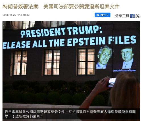| [#41] 「富豪淫媒」愛潑斯坦檔案,魔鬼名冊 嗱 ~~ 講得出,做得到㗎,簽返個大名先 ~ 又完成一項競選承諾,耶。。。 -- 美國總統特朗普簽署法案,司法部要公開已故富商愛潑斯坦相關案件的文件。 法案早前獲國會參、眾兩院通過,特朗普簽署後才能生效。根據法案,司法部要公布手上掌握所有與案件調查及起訴相關的非機密記錄、文件、通信及調查資料;允許司法部保留某些資料,例如受害者個人信息及可能影響正進行調查的資料。 愛潑斯坦生前與大批美國政商名流交往密切,因涉嫌性犯罪被捕後,2019年8月死於獄中,被判定為自殺。近日民主與共和黨輪番公開愛潑斯坦案部分文件,互相指責對方陣營高層人物與愛潑斯坦有關聯。 ![]() |