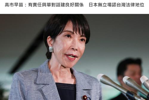 | [#110] 中国駐大阪總領事揚言要把日本首相斬首 都係川建國幫到手 ~ 一個電話就捧個和平獎。 好,聽日加單,大豆拿來。。。 -- 日本首相高市早苗11月26日表示,有責任與中國對話建立良好關係,又指日本無立場認定台灣法律地位。她也被問到早前的「台灣有事」論,她指「由於(當時)被問及具體事例,所以在那個範圍內作出誠實的回答」。 共同網報道,高市早苗在黨首討論中,就中日關係惡化的議題稱,有責任與中國對話建立良好關係,「通過對話建立全面的良好關係、追求國家利益最大化是我的責任」。 她又就台灣問題表示,「維持著非政府間的實務關係。(日本)根據《三藩市和約》放棄了全部許可權,並無認定台灣法律地位的立場。」 ![]() |