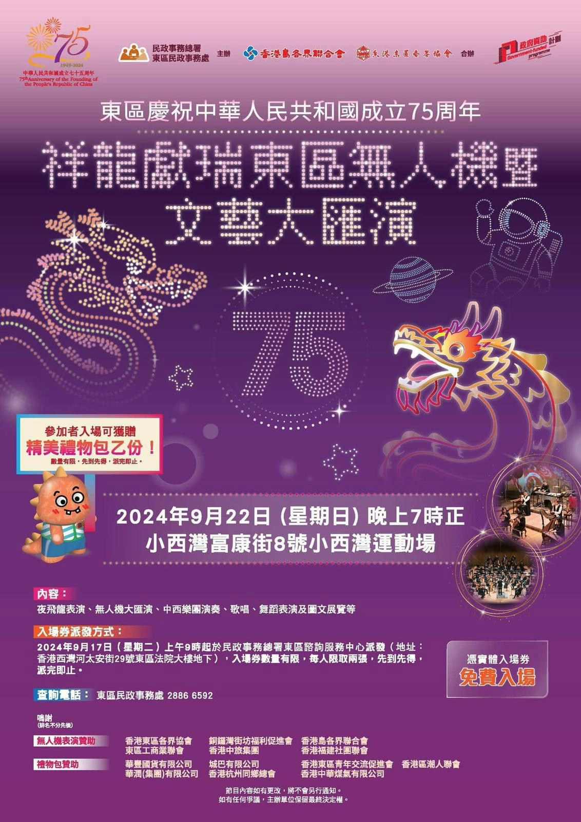 [#5] 大仙有求不應。。原本8點半開始,一個鐘後先話 : 因訊號問題取消 同時間大埔條「奶龍」又可以如期飛上天喎,真係咁邪? -- 大埔晚上有另一場無人機表演,由大埔民政事務處及多個團體合辦的「林村河海陸空巡遊匯演」,由500架無人機參與演出,表演以卡通人物「奶龍」為主題,有「奶龍」與龍共舞,表演醒獅、划龍舟等地區特色圖案,亦有踏單車、踢足球等運動主題圖案,表演歷時約15分鐘。 |