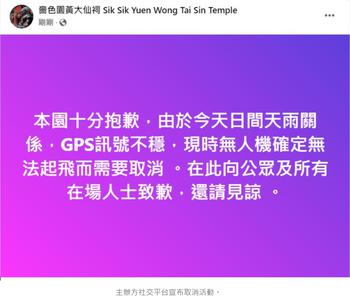 [#12] 大仙有求不應。。原本8點半開始,一個鐘後先話 : 因訊號問題取消 放無人機係盛事,我而家至知! |