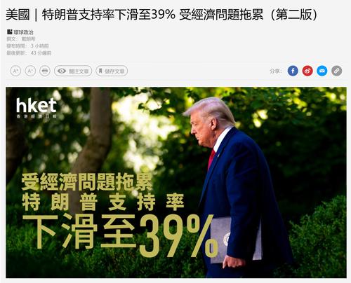 | [#48] BBC真係。。。。唉 美國人信,共和黨選民信 .. 外國人唔信嘅事實 .. 3日前最新民調 ... 侵皇實話係假新聞, 佢會話自己支持率係史上歷任總統最高 93%。 靚女發言人預報,侵皇將會為低浮雲解畫,係新聞自由的錯。 -- 特朗普於周二(16日)表示,將於美國時間周三(17日)晚發表全國電視講話。 路透社與益普索(Ipsos)最新民調顯示,美國總統特朗普(Donald Trump)的支持率下滑至39%,逼近其本屆任期內的最低水平,調查指一大原因為共和黨選民不滿特朗普的經濟政策。 這項為期三天的調查於周日(14日)結束,在全美一共訪問1,016人。調查結果顯示,39%的美國成年人認可特朗普的工作表現,低於12月初的41%,與其11月中旬創下的本屆任期最低紀錄38%僅相差1個百分點。 ![]() |