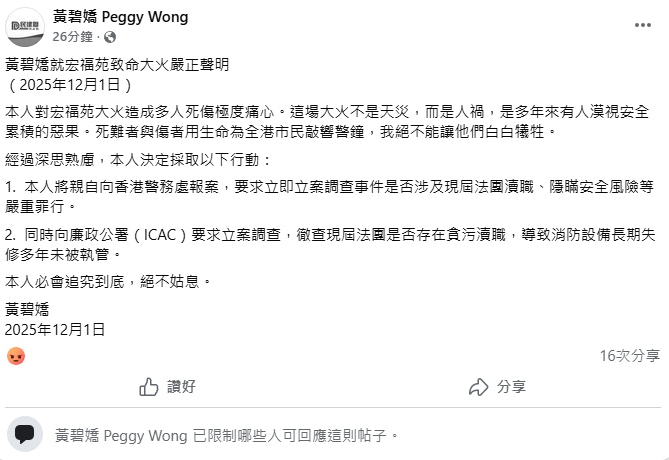 | [#7] 四眼嬌成禮義廉棄卒 仲唔拉晒班黑布記者? 》大埔宏福苑五級火|黃碧嬌弔唁無答提問同行者叫記者「躝開」 ... |