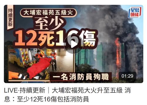 | [#73] 大埔宏福苑火警升為四級 話死亡己升到12。唉! |