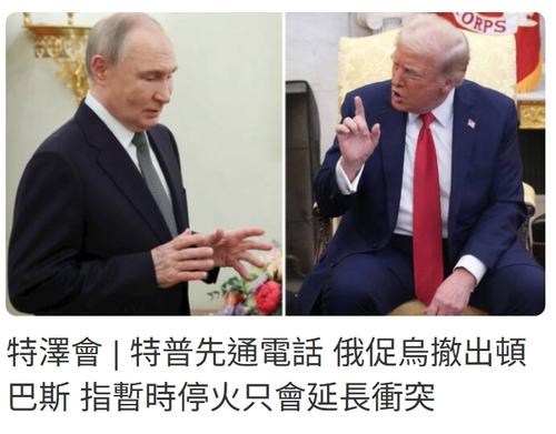 | [#148] 烏克蘭反攻俄羅斯 進展為0!美俄會談5小時 換來普丁嗆聲:準備好與歐作戰 俄烏戰爭打了快4年,和平仍遙遙無期。美俄2日的會談持續了近5個小時,從下午談到半夜,仍毫無進展。俄羅斯總統普丁顯然只有一個目的,那就是烏克蘭依照他的條件投降、割土求和。 普丁會前就放話,稱俄軍已奪下烏克蘭東部戰略重鎮「紅軍村」(Pokrovsk,又譯為「波克羅夫斯克」),以此向美方證明俄軍正在戰場得勝,烏軍卻是節節敗退。另外,普丁還想把歐洲在和談中邊緣化,除了指控歐洲只想戰爭,更揚言準備好與歐作戰。 https://tw.news.yahoo.com/%E9%80%B2%E5%B1%95%E7%82%BA0-%E7%BE%8E%E4%BF%84%E6%9C%83%E8%AB%875%E5%B0%8F%E6%99%82-%E6%8F%9B%E4%BE%86%E6%99%AE%E4%B8%81%E5%97%86%E8%81%B2-%E6%BA%96%E5%82%99%E5%A5%BD%E8%88%87%E6%AD%90%E4%BD%9C%E6%88%B0-063000072.html |