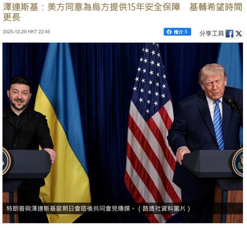 | [#164] 烏克蘭反攻俄羅斯 點保?口噏15年不變?鵝就唔敢再郁烏? 無分隔,無維和部隊,隻鵝真係會咁聽話? -- 烏克蘭總統澤連斯基表示,美國同意為烏克蘭提供為期15年的可靠安全保障,並有可能延長,但基輔希望保障期能夠更長,他星期日與美國總統特朗普會面時,希望美方考慮30年、40年、甚至50年的可能性,特朗普回應說會考慮。 澤連斯基向記者表示,美國提出的俄烏20點和平方案,仍有兩個主要問題有待解決,包括札波羅熱核電站的控制權,以及頓巴斯地區的歸屬問題。 俄羅斯克里姆林宮發言人佩斯科夫說,俄烏在領土方面的問題分歧巨大,重申烏克蘭必須從頓巴斯地區撤軍,如果基輔不同意達成協議,將會失去更多領土。他又說,總統普京很快會與特朗普通話。 新聞來源:https://news.rthk.hk/rthk/ch/component/k2/1837919-20251229.htm?spTabChangeable=0 ![]() 最後修改時間: 2025-12-30 10:17:39 |