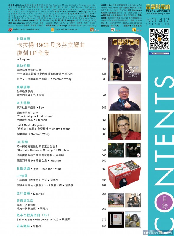 今期封面專題由Stephen哥介紹卡拉揚1963貝多芬交響曲復刻LP全集,周凡夫與閻惠昌談香港中樂團首張藍光碟,Manfred訪問了黎允文,詳談他的電影小島嶼,披頭兄講述他認為的全年最佳演奏,震撼的港樂貝九