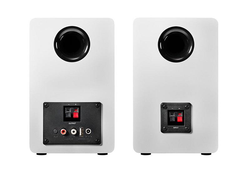 音箱箱體採用 MDF 材質製成,機身側面設有電源與音量旋鈕。其他規格方面,外觀尺寸為 125 × 136 × 200mm(寬 × 深 × 高),體積雖然緊湊,卻能實現最高 30W 的輸出功率。重量方面,左聲道約 1.5kg,右聲道約 1.6kg。