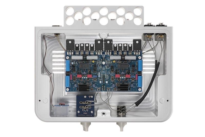 機身材料完全採用高導電率的純鋁材質 1070。無論是放大器本體或電源部份,其主機箱皆由 1070 鋁錠直接削切而成,形成無接縫、無連結的單一結構,藉此消除機械性應力。超薄且輕量的頂蓋同樣採用 1070 材料,並以單點固定於主機箱,以避免組裝時造成任何應力。