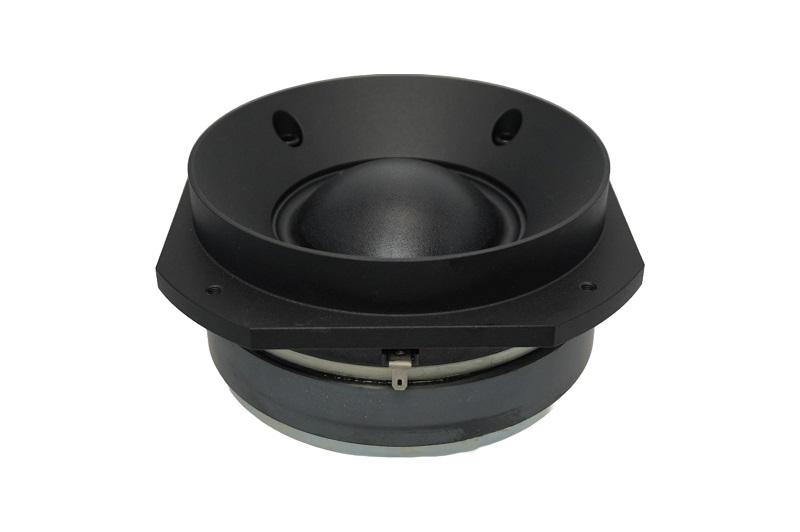 此外,輕量化、單層銅音圈繞製於一個略長於磁隙的音圈骨架上,使其在運作頻段的低端具備充裕的振幅,同時保持細節與控制力。整片式的布質半球振膜與懸邊經特別塗佈處理,以確保一致性與低染色,後側另設置第二懸邊,在動態狀態下維持音圈的穩定。