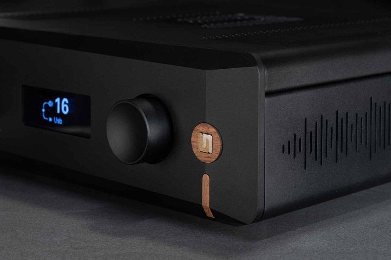 木質鑲嵌元素呼應歷史悠久的 Unico 標誌,強調品牌傳承。Unison Research® 標誌更成為電源開關按鈕,將功能與品牌識別巧妙結合。