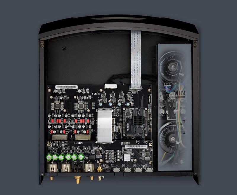 寬裕的 P2 機箱空間,讓 LUMIN 能將 X 系列規格的環形變壓器整合於機內,實現更簡潔的一體化設計。此架構在保留模擬與數碼電源分離優勢的同時,也帶來更乾淨且高度整合的外觀。