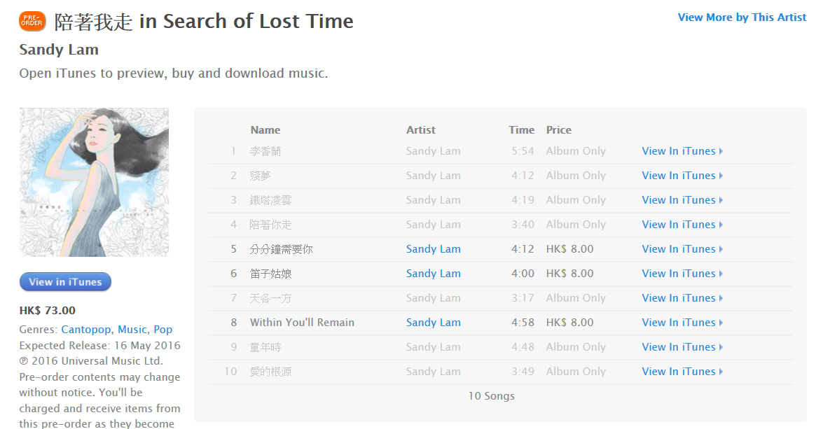 | [#14] 林憶蓮 『陪著我走』 錄音係好,但悶到呢... 最後修改時間: 2016-05-19 15:10:45 |