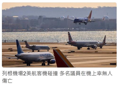 | [#6] 紐約直升機意外 同日另一單。。 -- 美國華盛頓列根國家機場今年以來事故頻傳,周四又傳出有2架美國航空的班機發生碰撞,其中一架客機上載有多名國會議員,所幸並未造成人員受傷。 聯邦航空管理局指,當天下午12點45分左右,一架美國航空公司5490號航班的機翼翼尖,在滑行道上撞上另一架美國航空4522航班。 ![]() |
